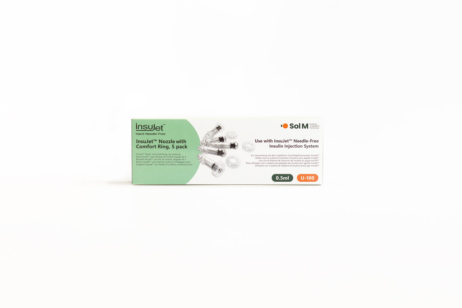 O sistema InsuJet™ foi desenvolvido para pacientes com diabetes que administram insulina. Ter um dispositivo injetor sem agulha é o recurso principal do sistema.