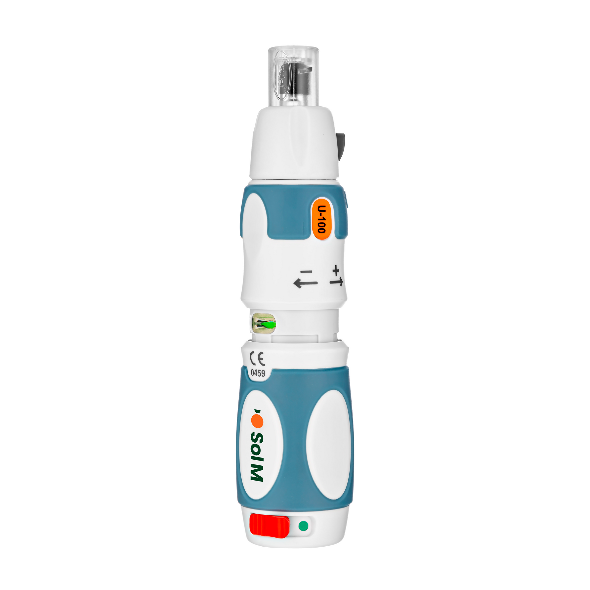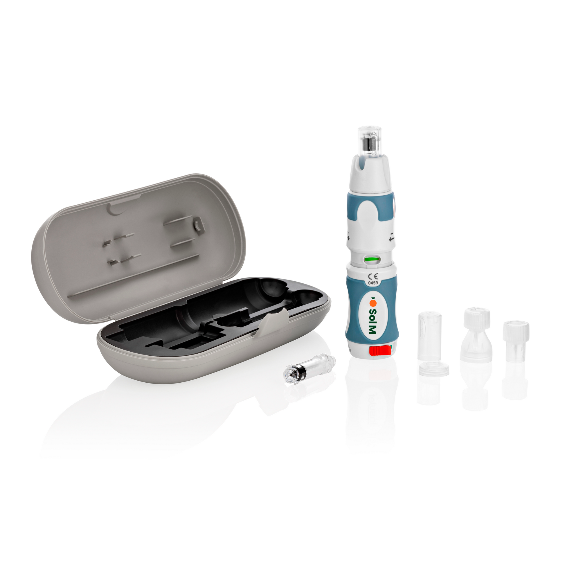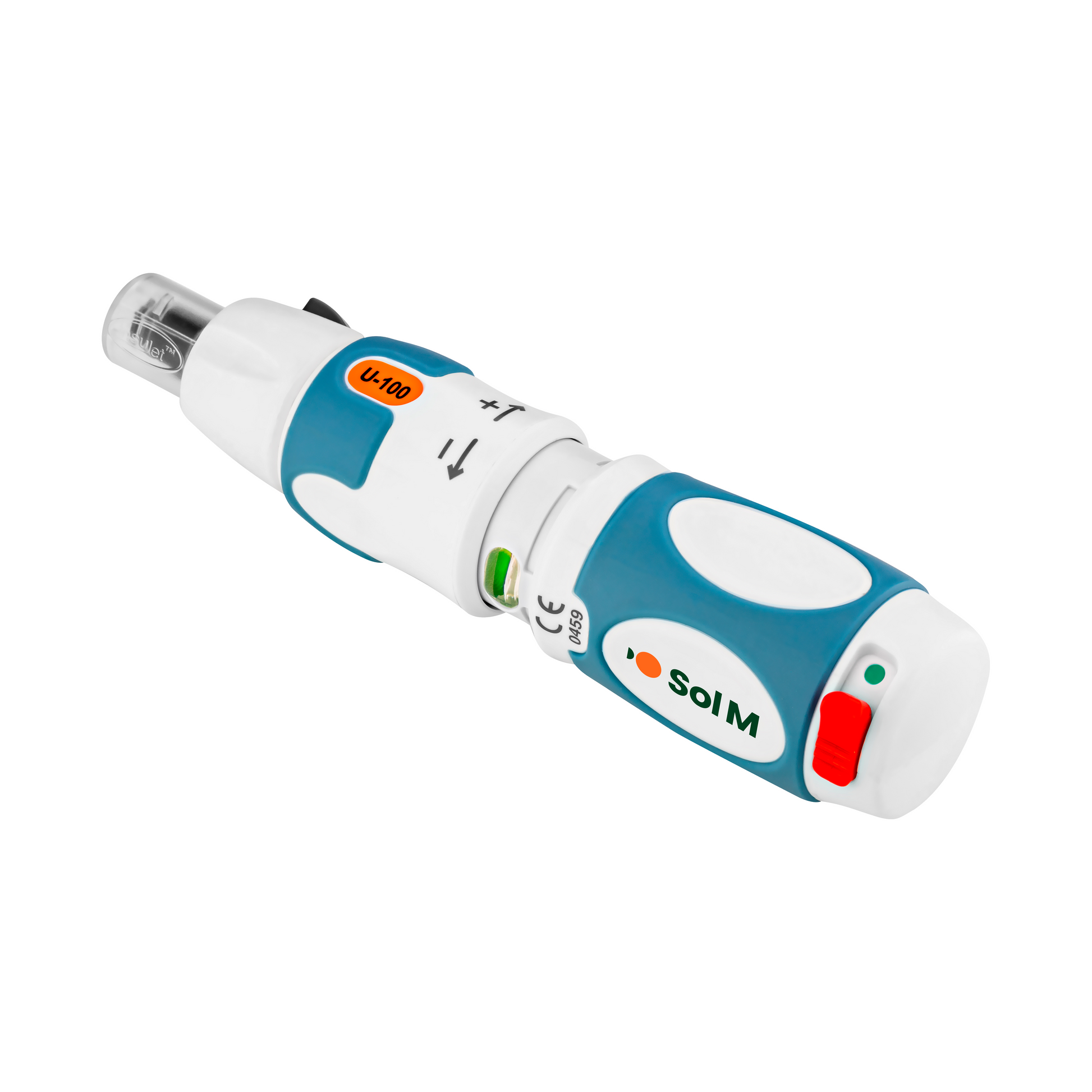 Ao aplicar a insulina através do dispositivo, é criado um jato fino de insulina que penetra facilmente na pele, atravessando o tecido intradérmico e espalhando-se uniformemente no tecido subcutâneo.